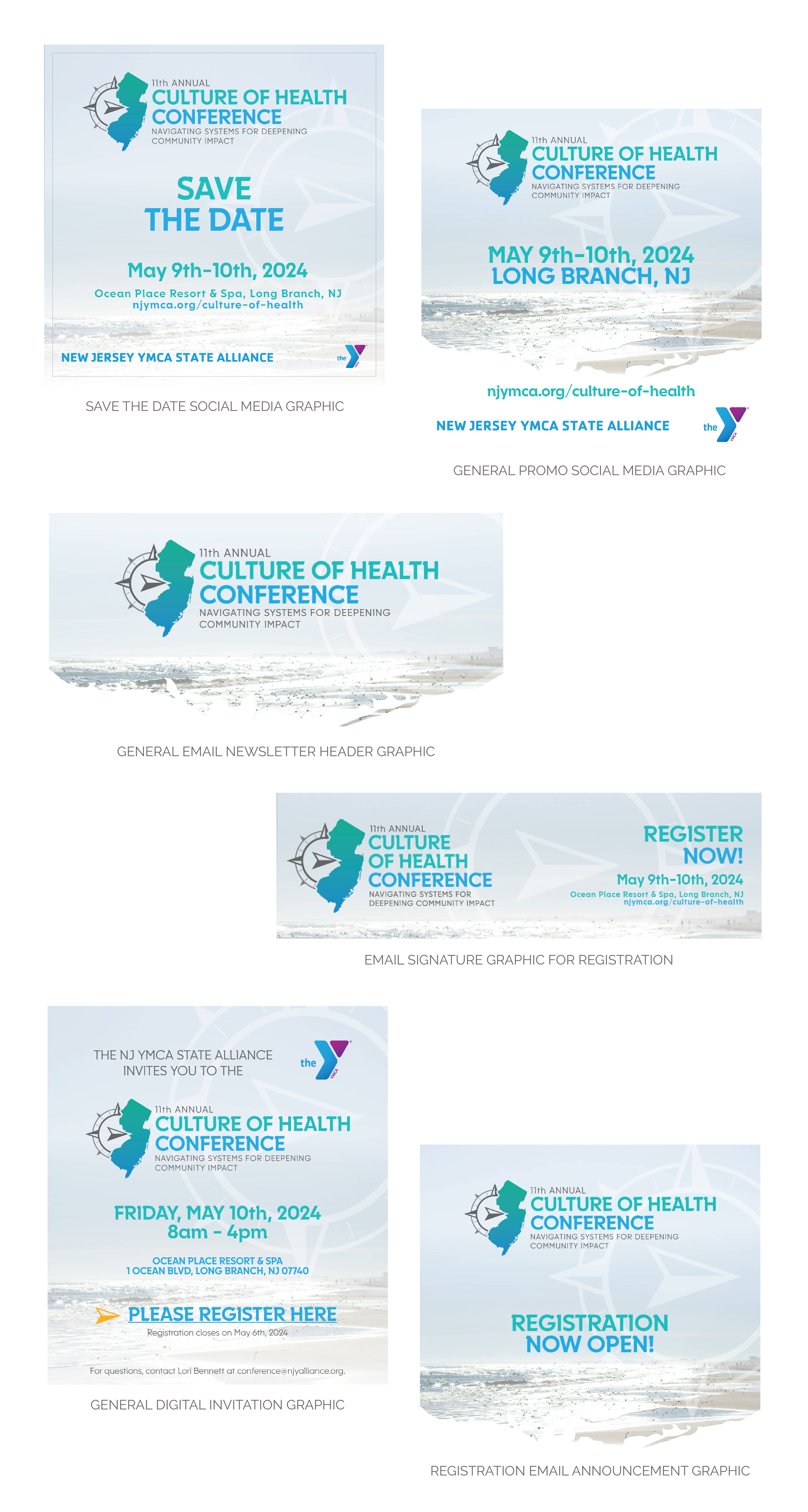 The New Jersey YMCA State Alliance was looking to revamp their annual Culture of Health Conference. Having worked with them for several years on various design and marketing needs, they reached out to me to create a brand new brand identity and all of their marketing design needs for their Culture of Health Conference for 2024, in its 11th year.