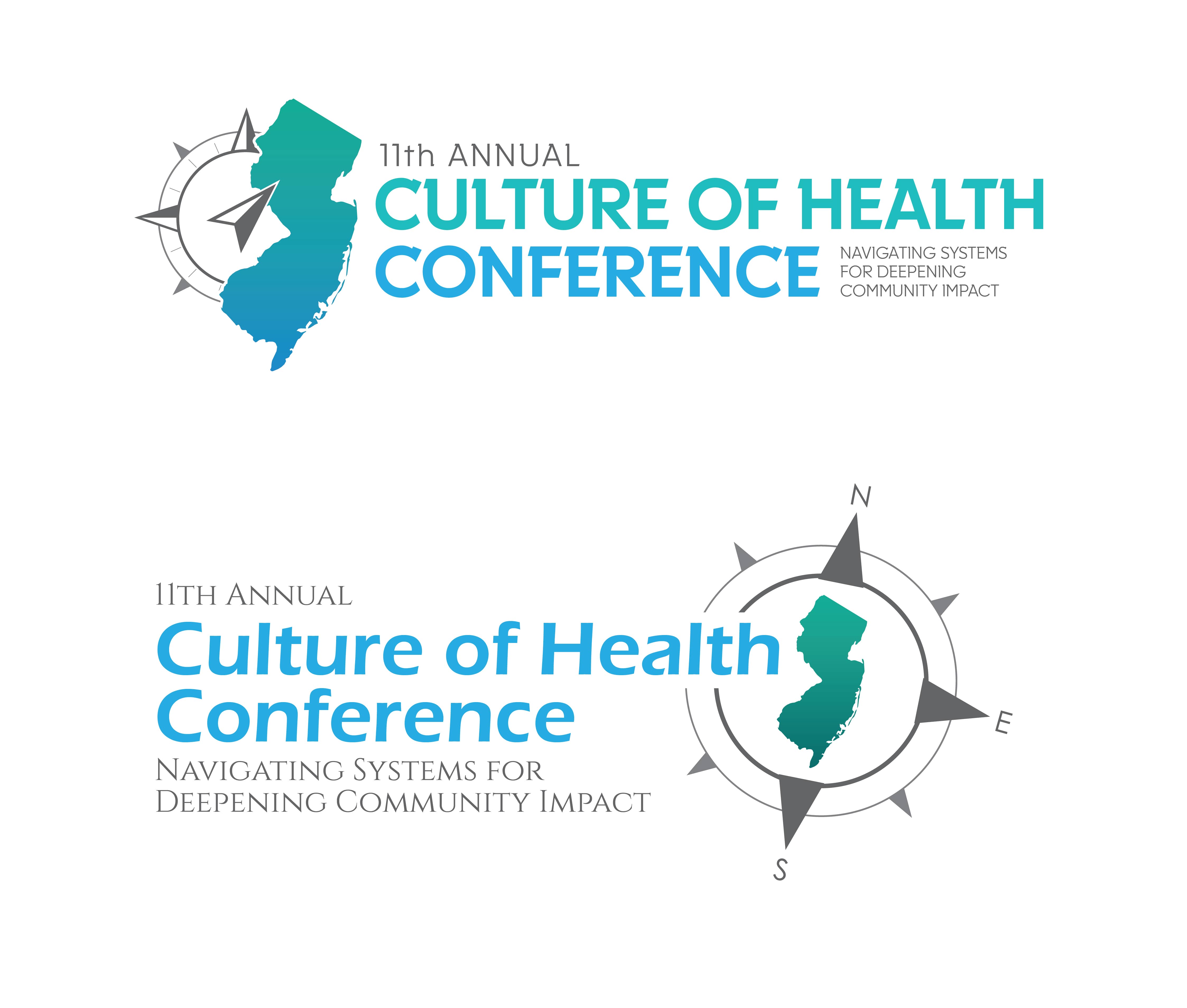 Taking all of those elements they wanted, I got to work figuring out a way to encompass (pun intended) all of what they were looking for in a logo and make it the new face of their Culture of Health Conference. I worked on various ways to turn the state of New Jersey into a compass along with using the blue/green Y USA color scheme. The result were these two logo options, both of which keep with the nautical/ocean vibes while tying in New Jersey and navigation.